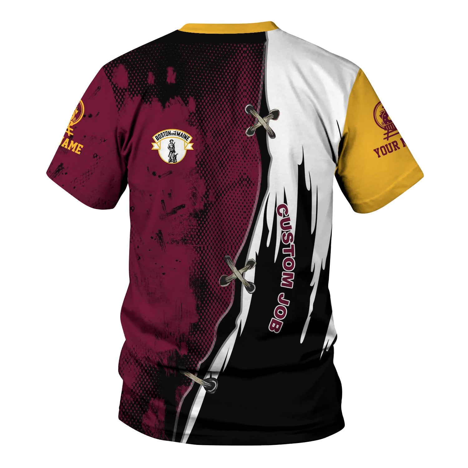 Railspirit Personalized Boston and Maine Railroad T-Shirt Retro Stitches Design with Custom Position Train Shirt