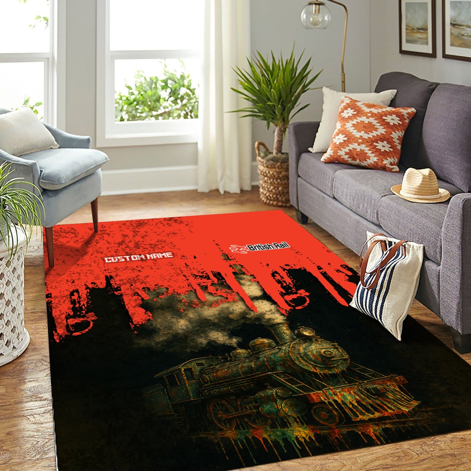 Railspirit Personalized British Railway Area Rug Vintage Train Art Style Rug For Locomotive Fans