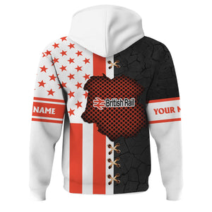 Railspirit Personalized British Railway Hoodie American Flag with Crack Effect Train Zip Up Hoodie