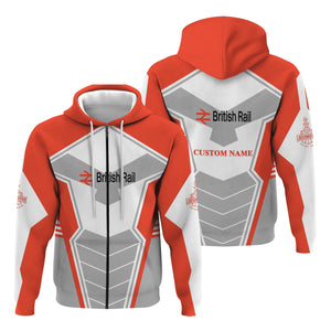 Railspirit Personalized British Railway Hoodie Engine-Inspired Style Train Zip Up Hoodie for Railroad Fanatic