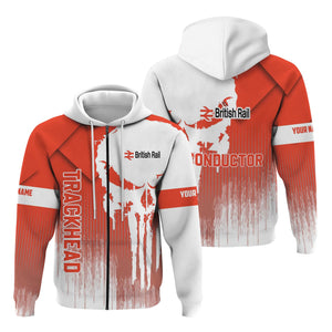 Railspirit Personalized British Railway Hoodie Skull Design with Custom Job Train Zip Up Hoodie for Trackhead Crew
