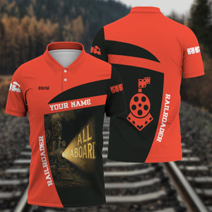 Railspirit Personalized British Railway Polo Shirt All Aboard Steam Train Movie Projector Style Shirt