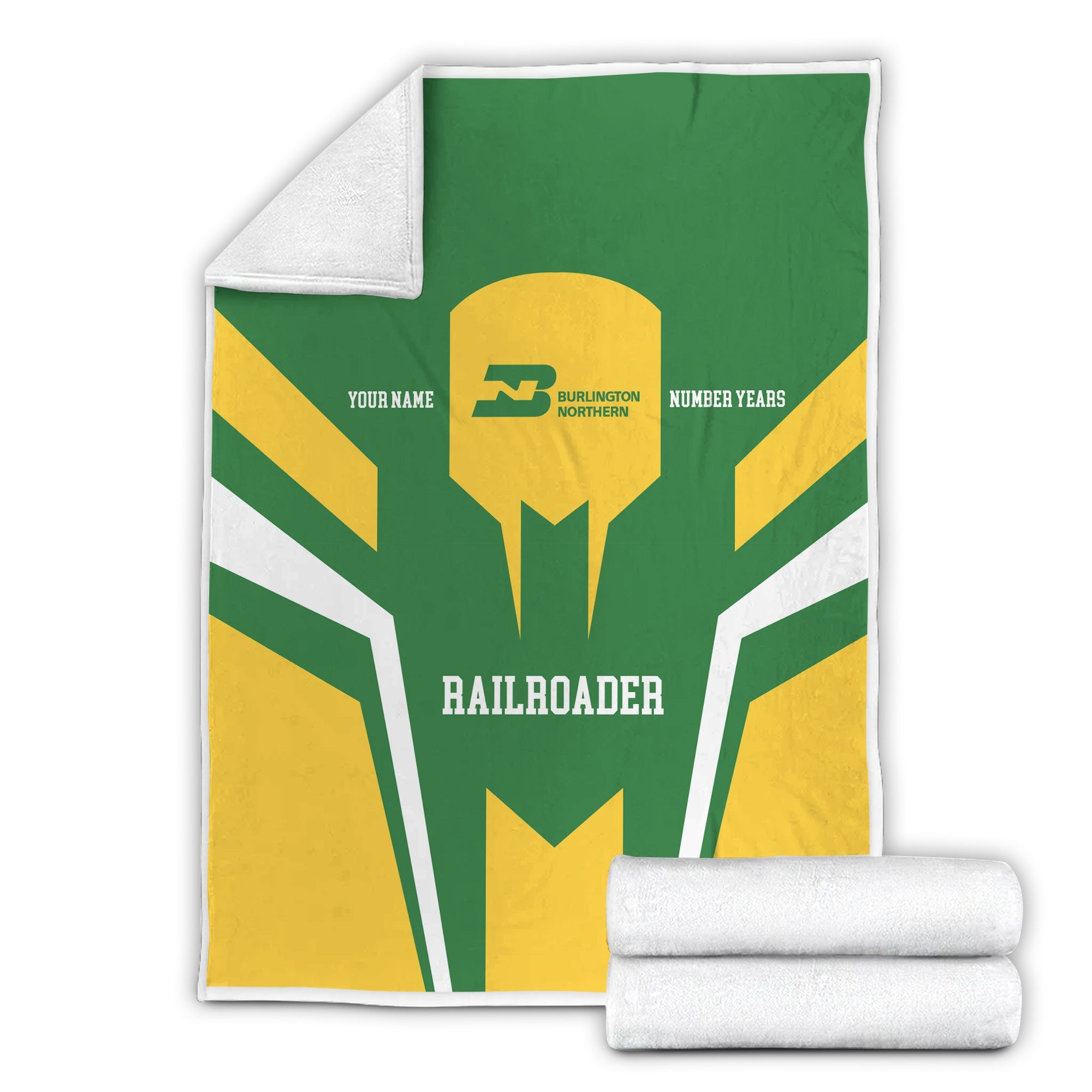 Railspirit Personalized Burlington Northern Railroad Blanket Custom Year Railroader Gift Idea For Train Lover