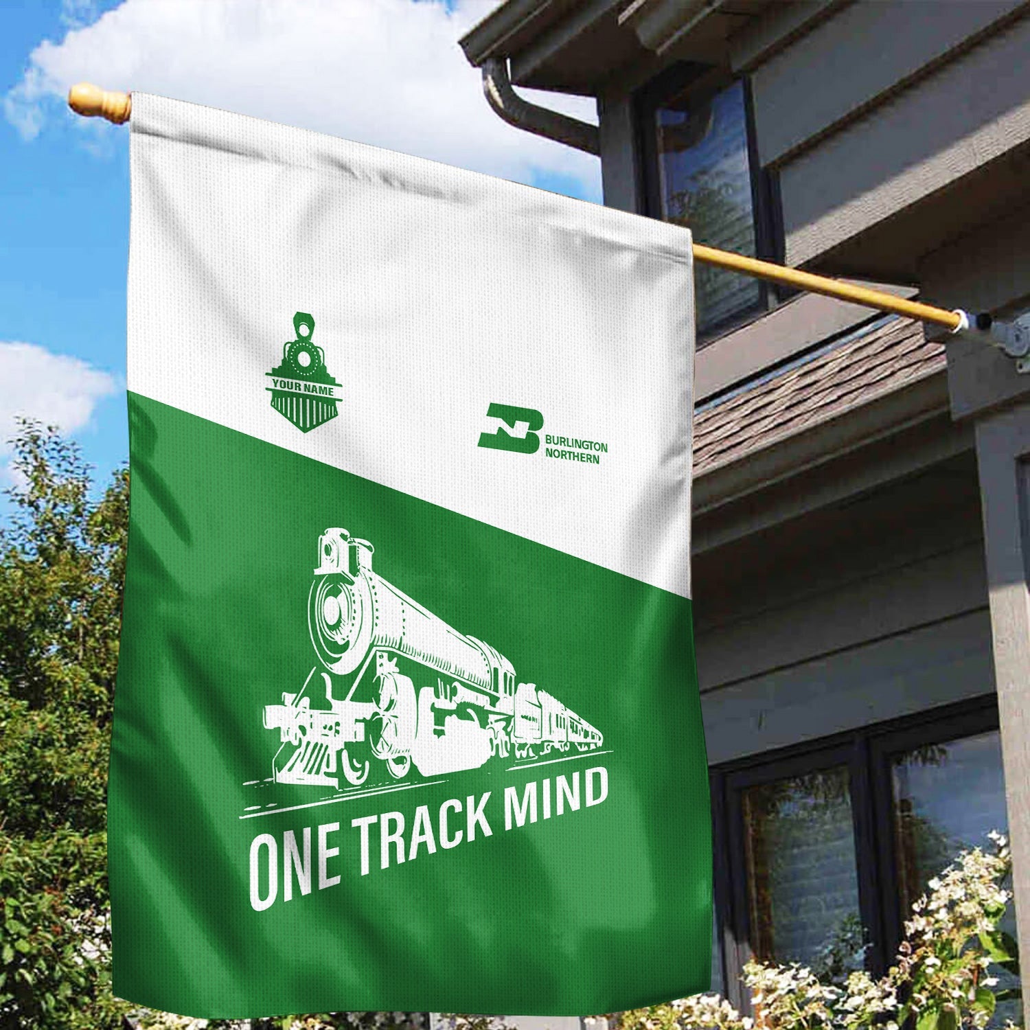 Railspirit Personalized Burlington Northern Railroad Garden Flag One Track Mind Flag Gift Idea For Train Lover