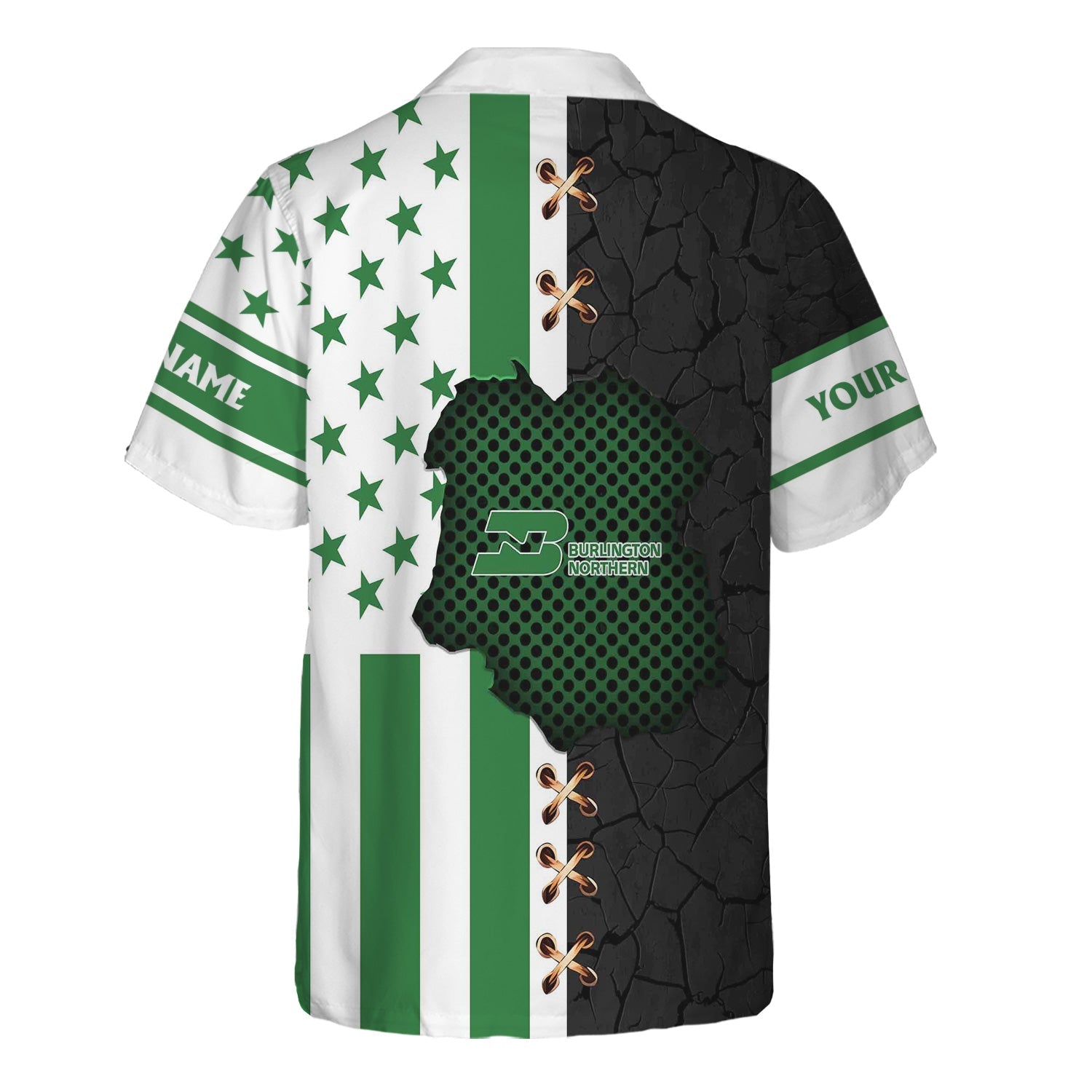 Railspirit Personalized Burlington Northern Railroad Hawaiian Shirt American Flag with Crack Effect Train Shirt