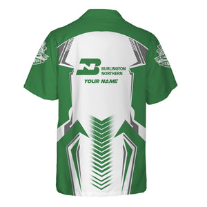 Railspirit Personalized Burlington Northern Railroad Hawaiian Shirt Standout Style with Custom Position Train Shirt