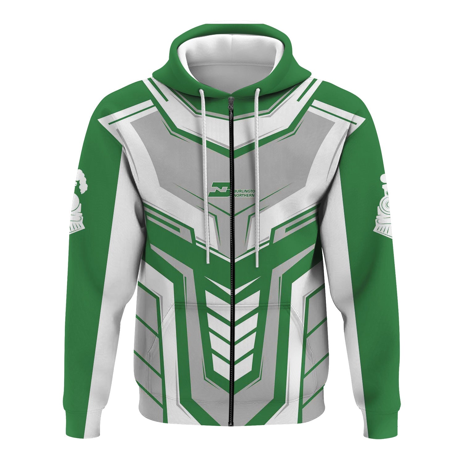 Railspirit Personalized Burlington Northern Railroad Hoodie Armor-Inspired Design Train Zip Up Hoodie All Over Print