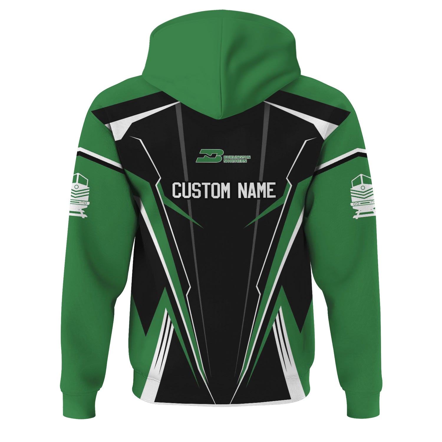 Railspirit Personalized Burlington Northern Railroad Hoodie Lightning-Edge Design Train Zip Up Hoodie For Railroad Lovers