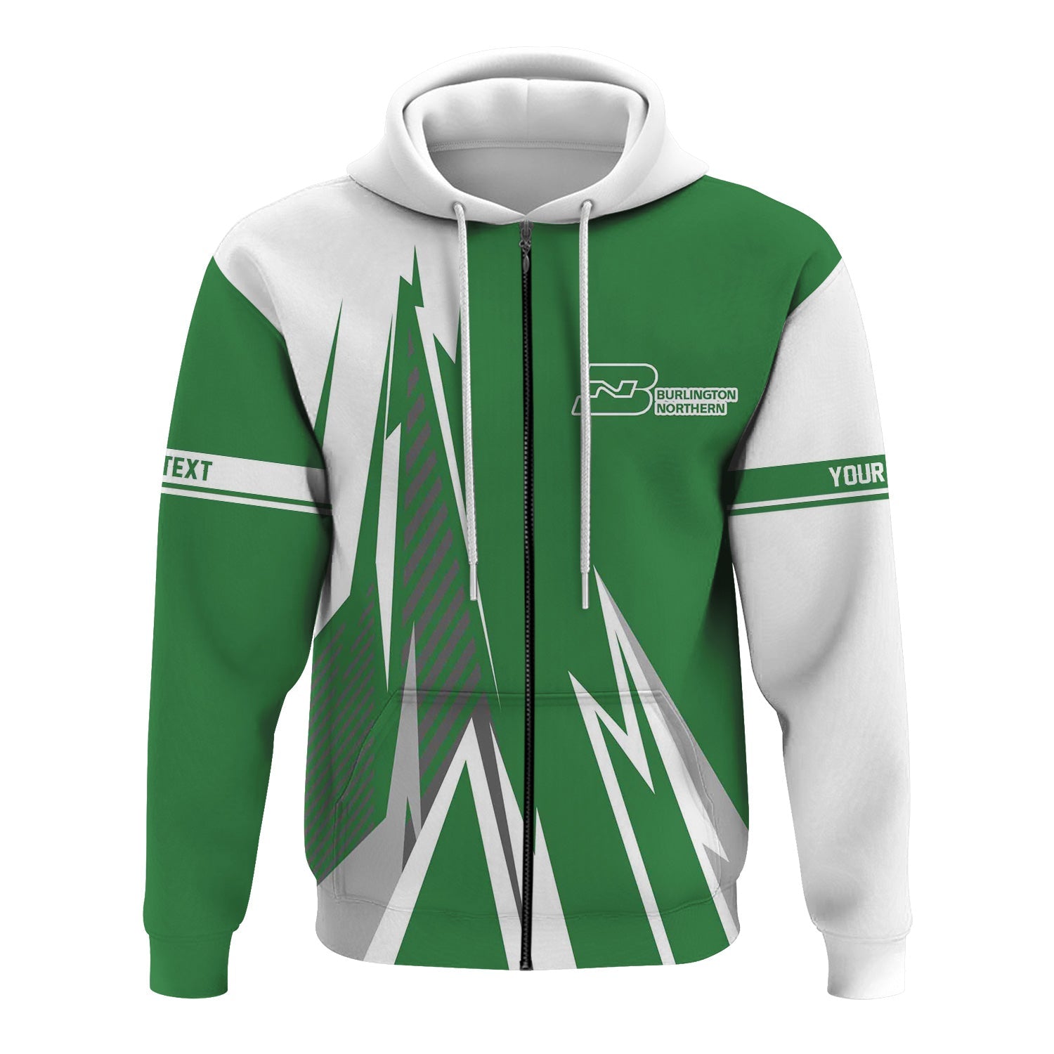Railspirit Personalized Burlington Northern Railroad Hoodie Lightning-Inspired Railway Style Zip Up Hoodie For Train Lovers