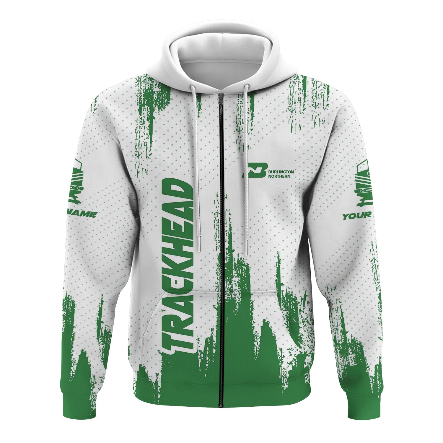 Railspirit Personalized Burlington Northern Railroad Hoodie Paint Impact Design Train Zip Up Hoodie for Trackhead