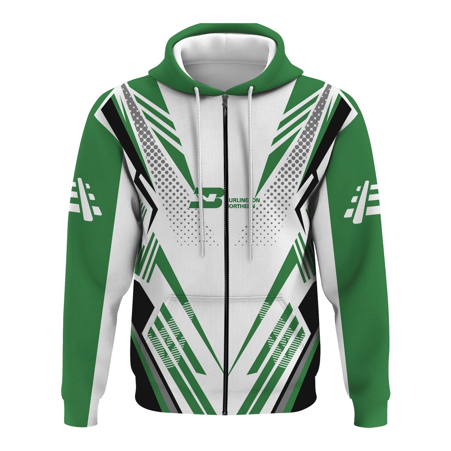 Railspirit Personalized Burlington Northern Railroad Hoodie Railroad Tribute Design Train Zip Up Hoodie for Train Lovers