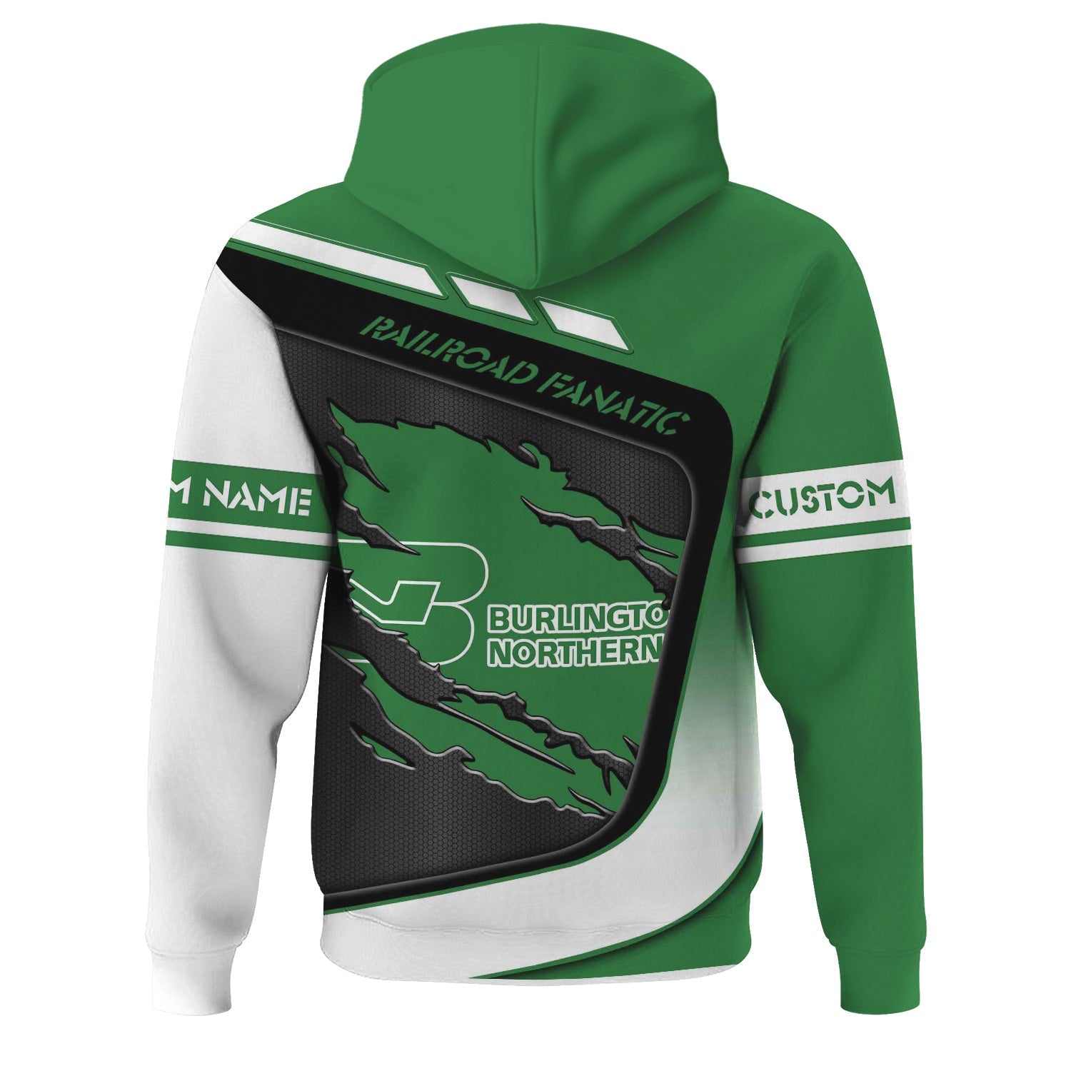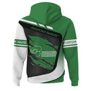 Railspirit Personalized Burlington Northern Railroad Hoodie Ripped Texture Style Train Zip Up Hoodie For Railroad Fanatic