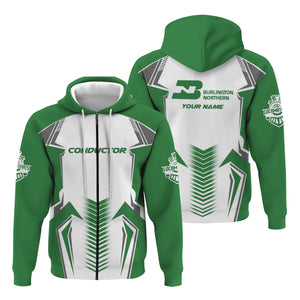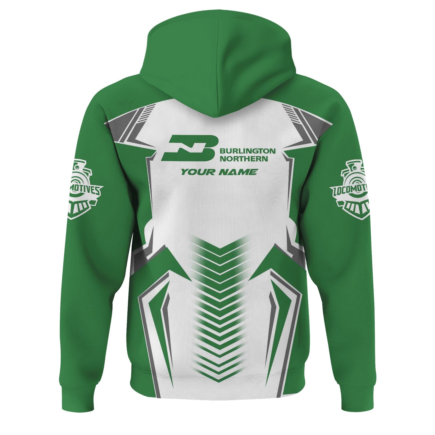 Railspirit Personalized Burlington Northern Railroad Hoodie Standout Style with Custom Position Train Zip Up Hoodie
