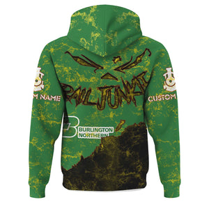 Railspirit Personalized Burlington Northern Railroad Hoodie Torn Graphic Style Train Zip Up Hoodie For Rail Junkie