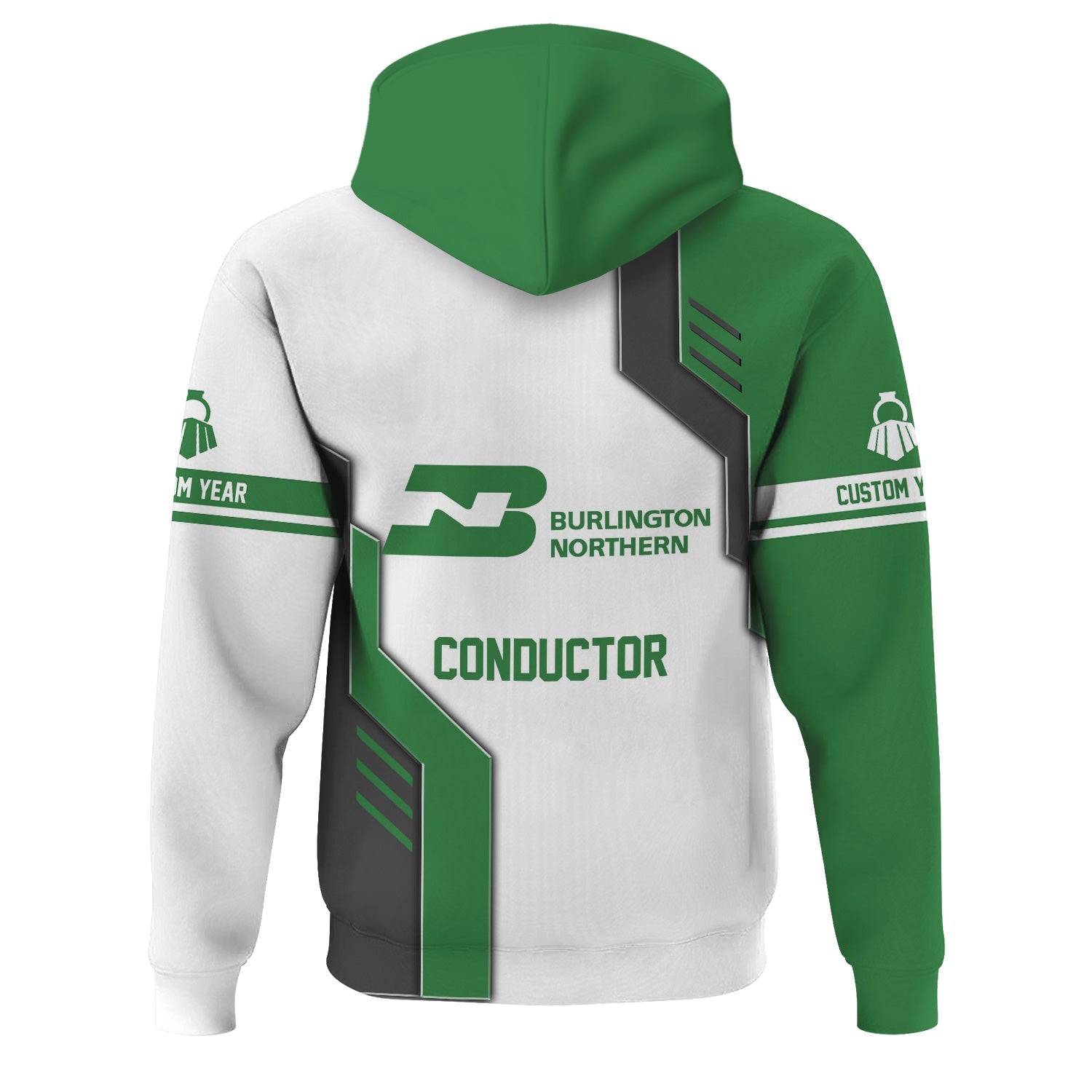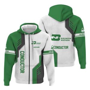 Railspirit Personalized Burlington Northern Railroad Hoodie Unique Railway Style with Custom Job Train Zip Up Hoodie