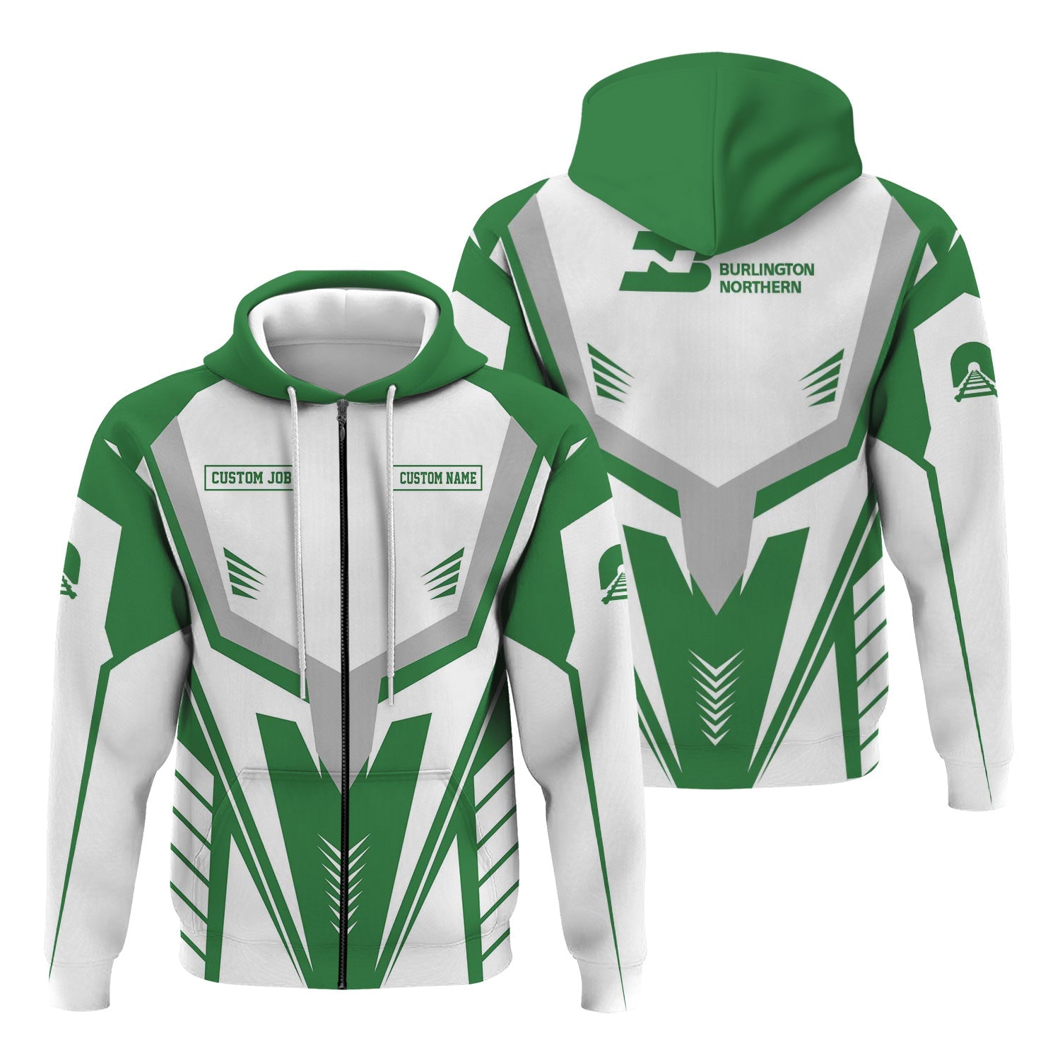 Railspirit Personalized Burlington Northern Railroad Hoodie Workwear-Inspired with Custom Position Train Zip Up Hoodie
