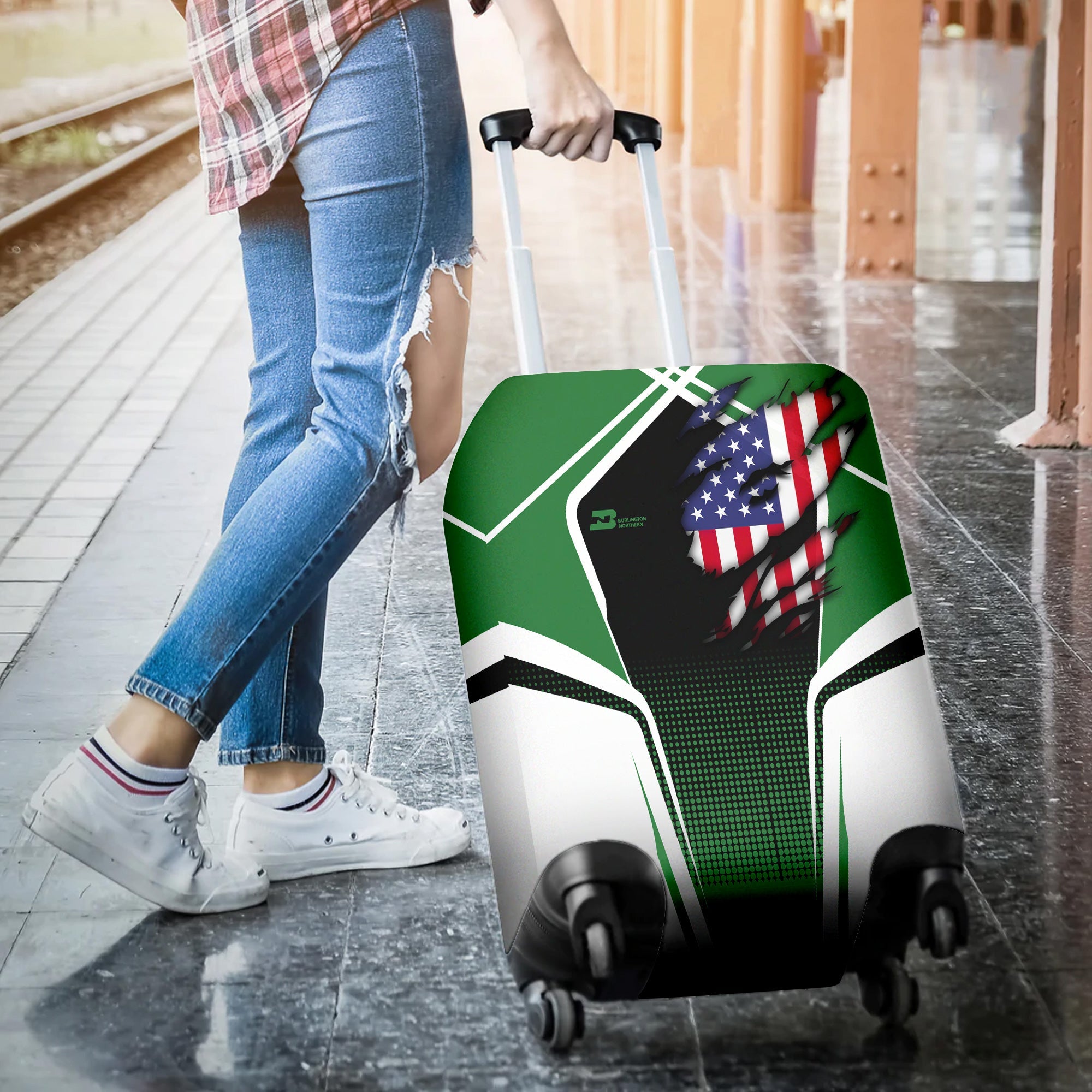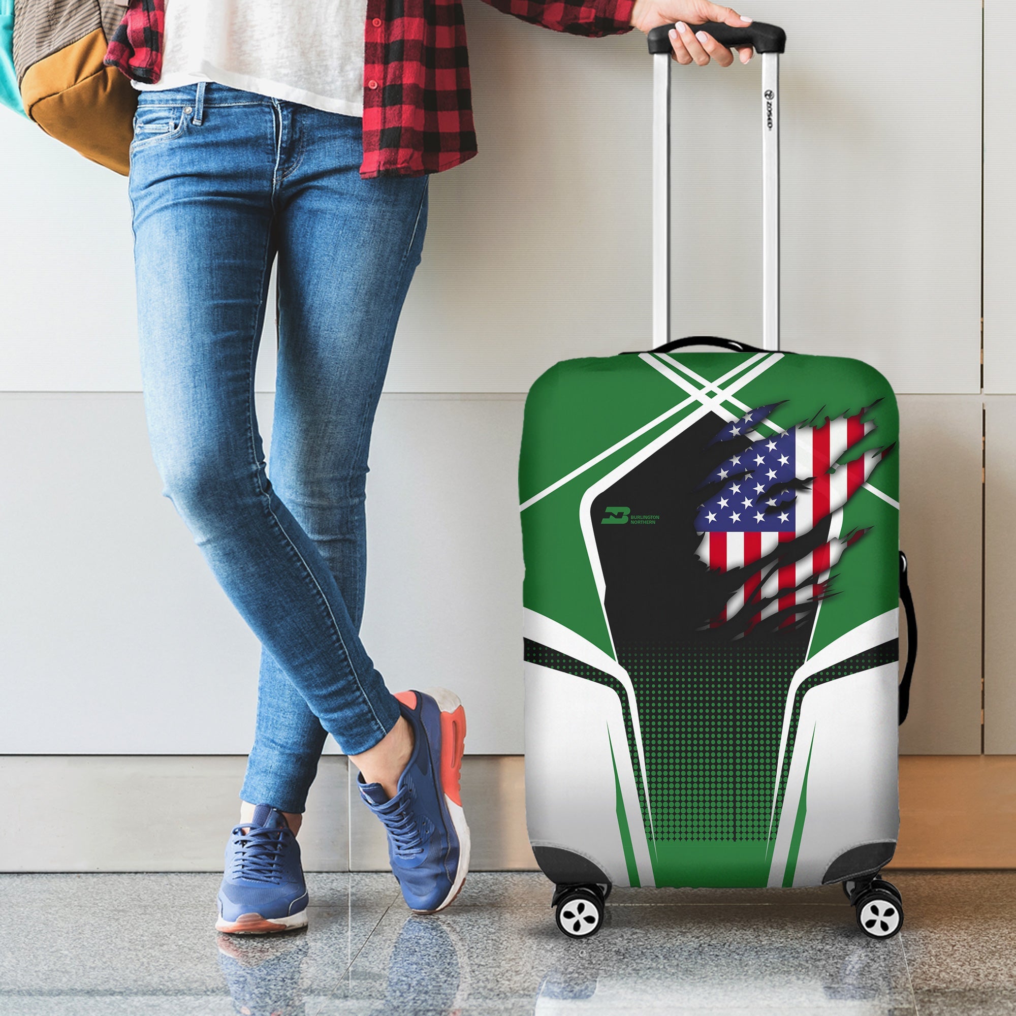 Railspirit Personalized Burlington Northern Railroad Luggage Cover American Eagle Vintage Train Luggage Protection