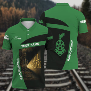 Railspirit Personalized Burlington Northern Railroad Polo Shirt All Aboard Steam Train Movie Projector Style Shirt