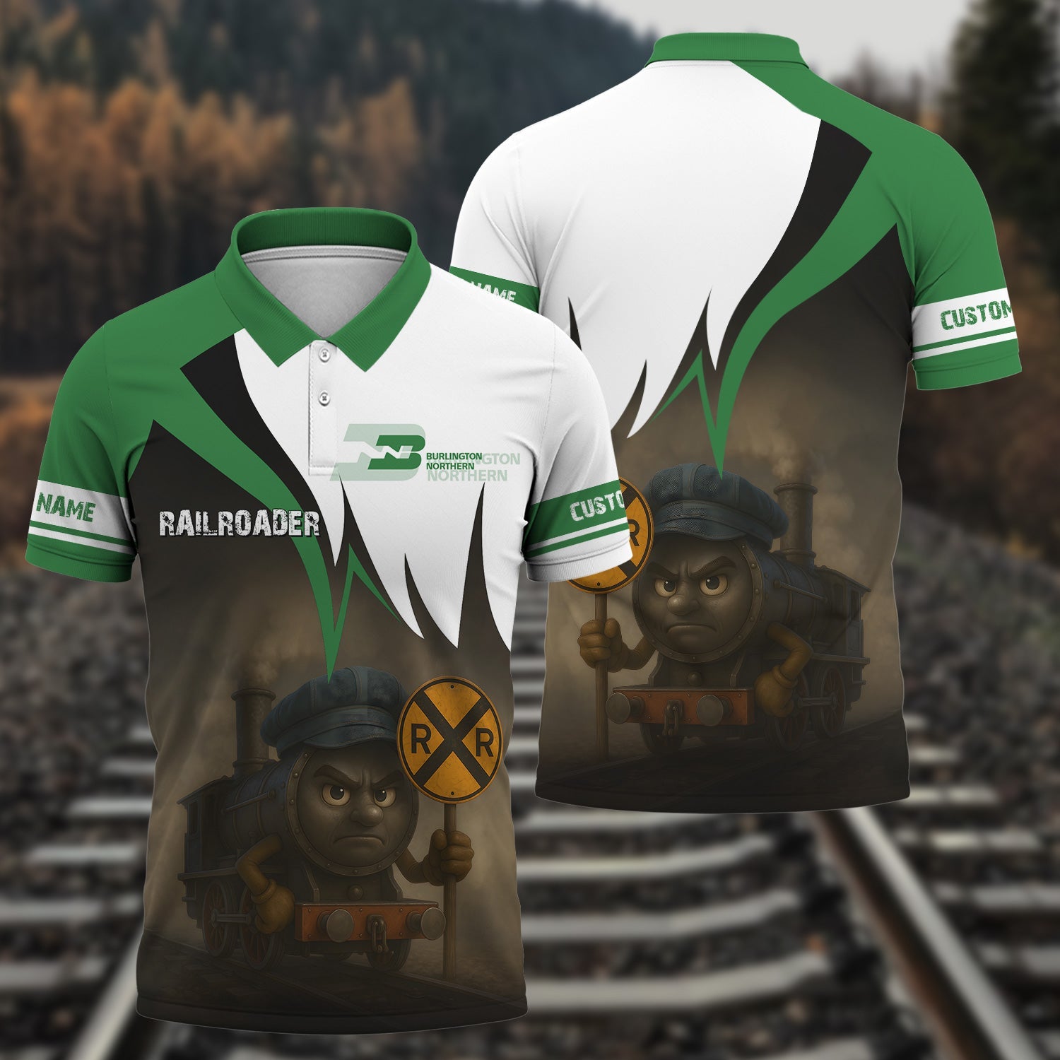 Railspirit Personalized Burlington Northern Railroad Polo Shirt Angry Train Polo Shirt Gift Idea For Train Lover