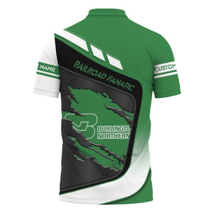 Railspirit Personalized Burlington Northern Railroad Polo Shirt Ripped Texture Style Train Shirt For Railroad Fanatic