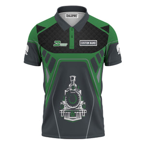 Railspirit Personalized Burlington Northern Railroad Polo Shirt Steam Locomotive Engine Graphic Train Shirt All Over Print