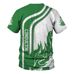 Railspirit Personalized Burlington Northern Railroad T-Shirt Flame Design with Custom Job Position Train Shirt