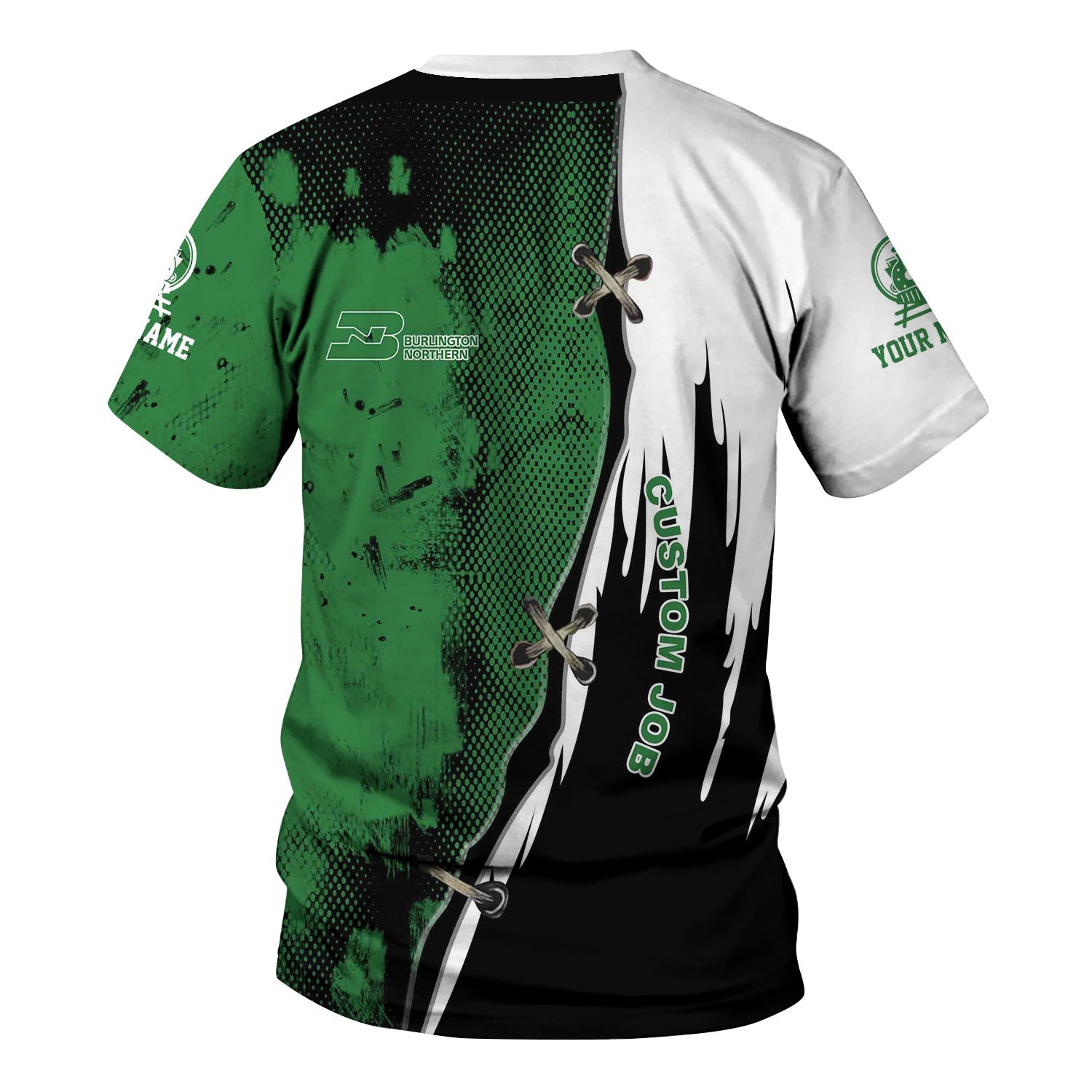 Railspirit Personalized Burlington Northern Railroad T-Shirt Retro Stitches Design with Custom Position Train Shirt