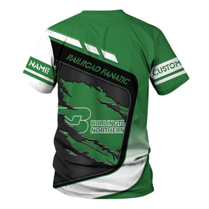 Railspirit Personalized Burlington Northern Railroad T-Shirt Ripped Texture Style Train Shirt For Railroad Fanatic