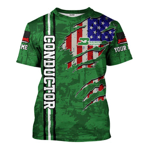 Railspirit Personalized Burlington Northern Railroad T-Shirt USA Flag Claw Art with Custom Job Train Shirt