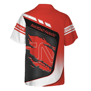 Railspirit Personalized Canadian National Railroad Hawaiian Shirt Ripped Texture Style Train Shirt For Railroad Fanatic