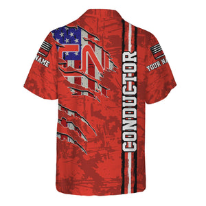 Railspirit Personalized Canadian National Railroad Hawaiian Shirt USA Flag Claw Art with Custom Job Train Shirt