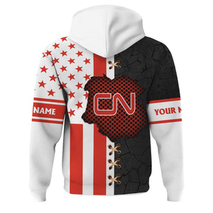 Railspirit Personalized Canadian National Railroad Hoodie American Flag with Crack Effect Train Zip Up Hoodie