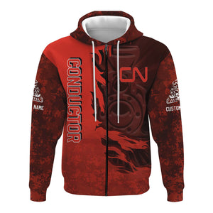 Railspirit Personalized Canadian National Railroad Hoodie Blazing Style with Custom Position Train Zip Up Hoodie