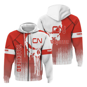 Railspirit Personalized Canadian National Railroad Hoodie Skull Design with Custom Job Train Zip Up Hoodie for Trackhead Crew