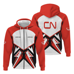 Railspirit Personalized Canadian National Railroad Hoodie Vibriant Style with Custom Position Train Zip Up Hoodie