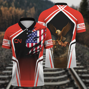 Railspirit Personalized Canadian National Railroad Polo Shirt American Eagle Vintage Train Shirt