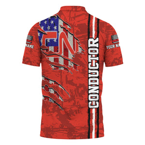 Railspirit Personalized Canadian National Railroad Polo Shirt USA Flag Claw Art with Custom Job Train Shirt