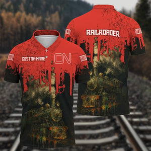 Railspirit Personalized Canadian National Railroad Polo Shirt Vintage Train Art Style Shirt For Locomotive Fans