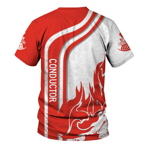 Railspirit Personalized Canadian National Railroad T-Shirt Flame Design with Custom Job Position Train Shirt