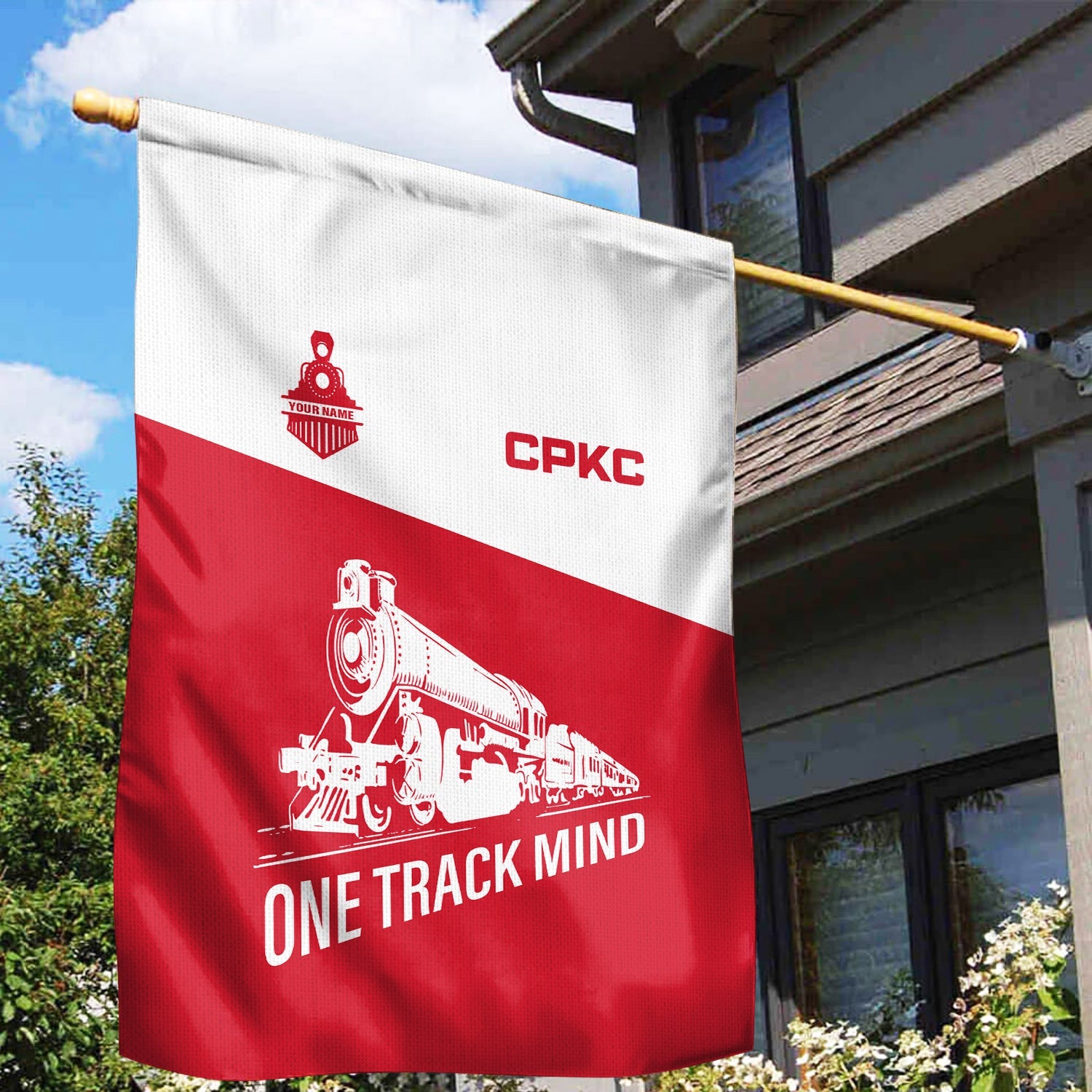 Railspirit Personalized Canadian Pacific Kansas City Garden Flag One Track Mind CPKC Flag Gift Idea For Train Lover