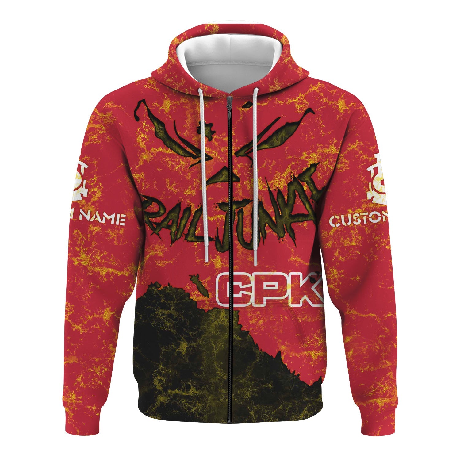 Railspirit Personalized Canadian Pacific Kansas City Hoodie Torn Graphic Style CPKC Train Zip Up Hoodie For Rail Junkie