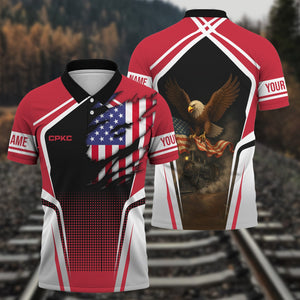 Railspirit Personalized Canadian Pacific Kansas City Polo Shirt American Eagle Vintage Train CPKC Shirt