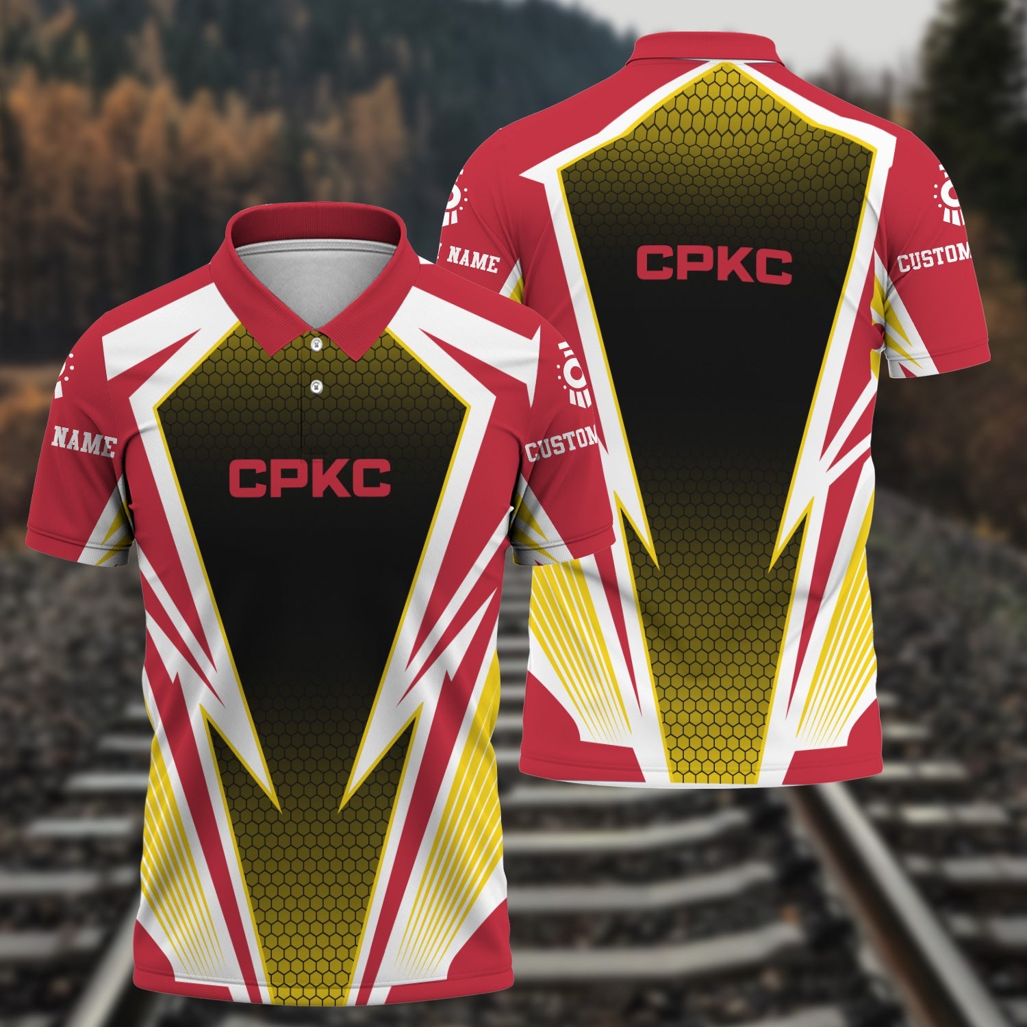Railspirit Personalized Canadian Pacific Kansas City Polo Shirt Lightning Graphic Style CPKC Shirt Gift Idea For Train Lover