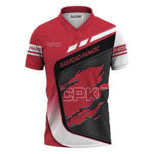 Railspirit Personalized Canadian Pacific Kansas City Polo Shirt Ripped Texture Style CPKC Train Shirt For Railroad Fanatic
