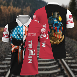Railspirit Personalized Canadian Pacific Kansas City Polo Shirt Train Skull American Flag CPKC Shirt All Over Print