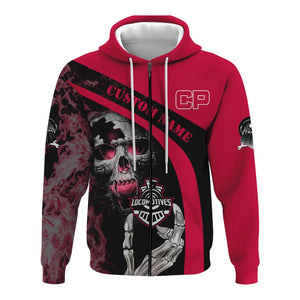 Railspirit Personalized Canadian Pacific Railroad Hoodie Flame Skull Design Train Zip Up Hoodie for Locomotive Fans