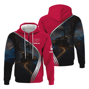 Railspirit Personalized Canadian Pacific Railroad Hoodie Steampunk Locomotive with Custom Year Train Zip Up Hoodie