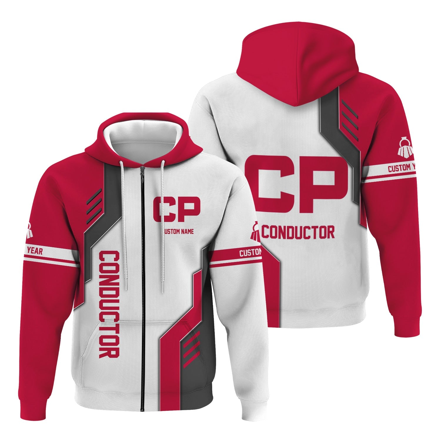 Railspirit Personalized Canadian Pacific Railroad Hoodie Unique Railway Style with Custom Job Train Zip Up Hoodie