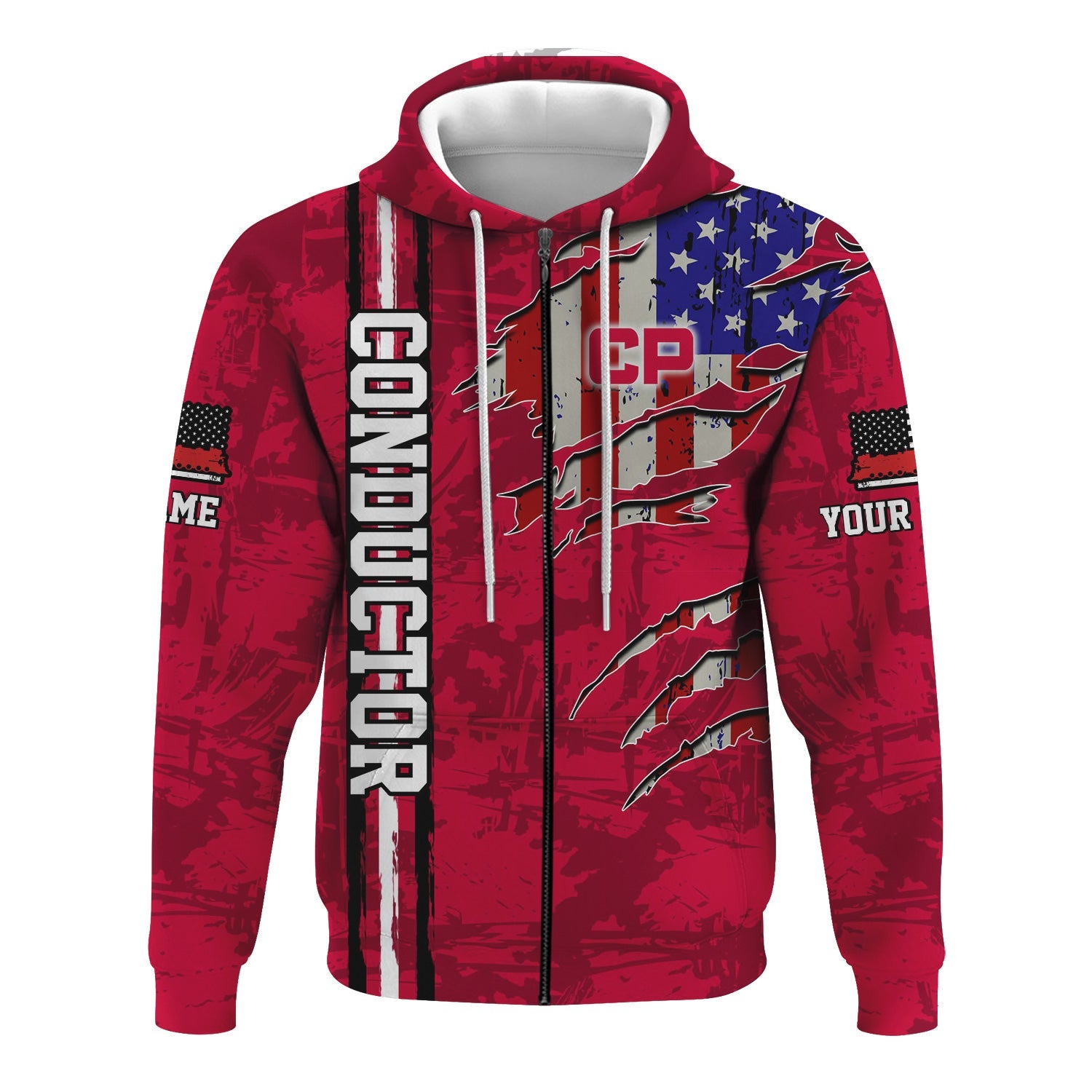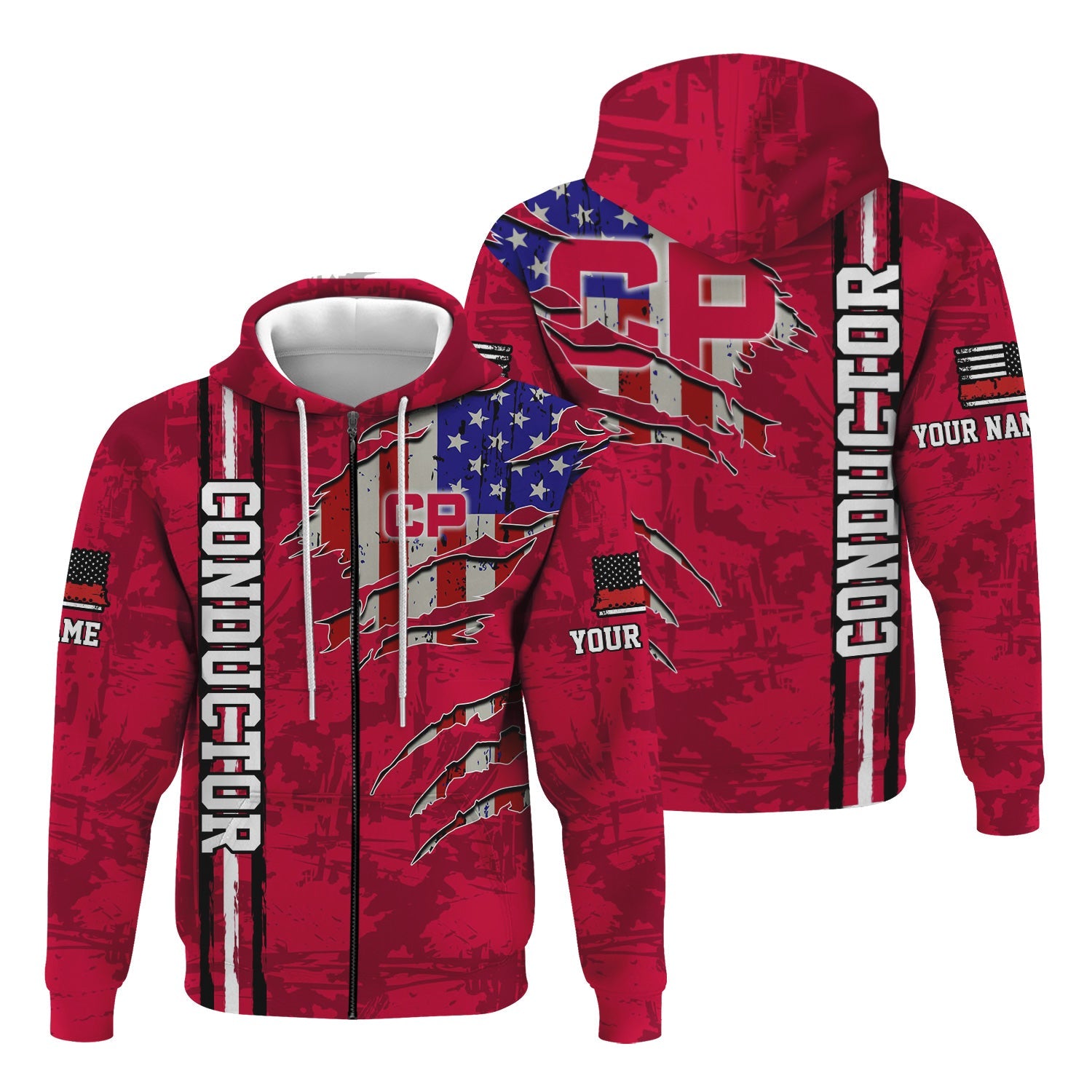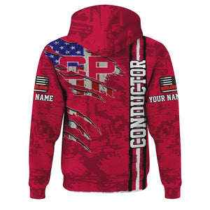 Railspirit Personalized Canadian Pacific Railroad Hoodie USA Flag Claw Art with Custom Job Train Zip Up Hoodie