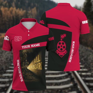 Railspirit Personalized Canadian Pacific Railroad Polo Shirt All Aboard Steam Train Movie Projector Style Shirt
